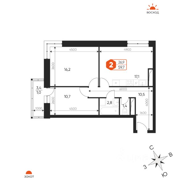 98 036 ₽/м²