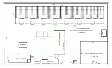 Склад разделён на холодильные и морозильные камеры (150, 250, 380 кв. м).