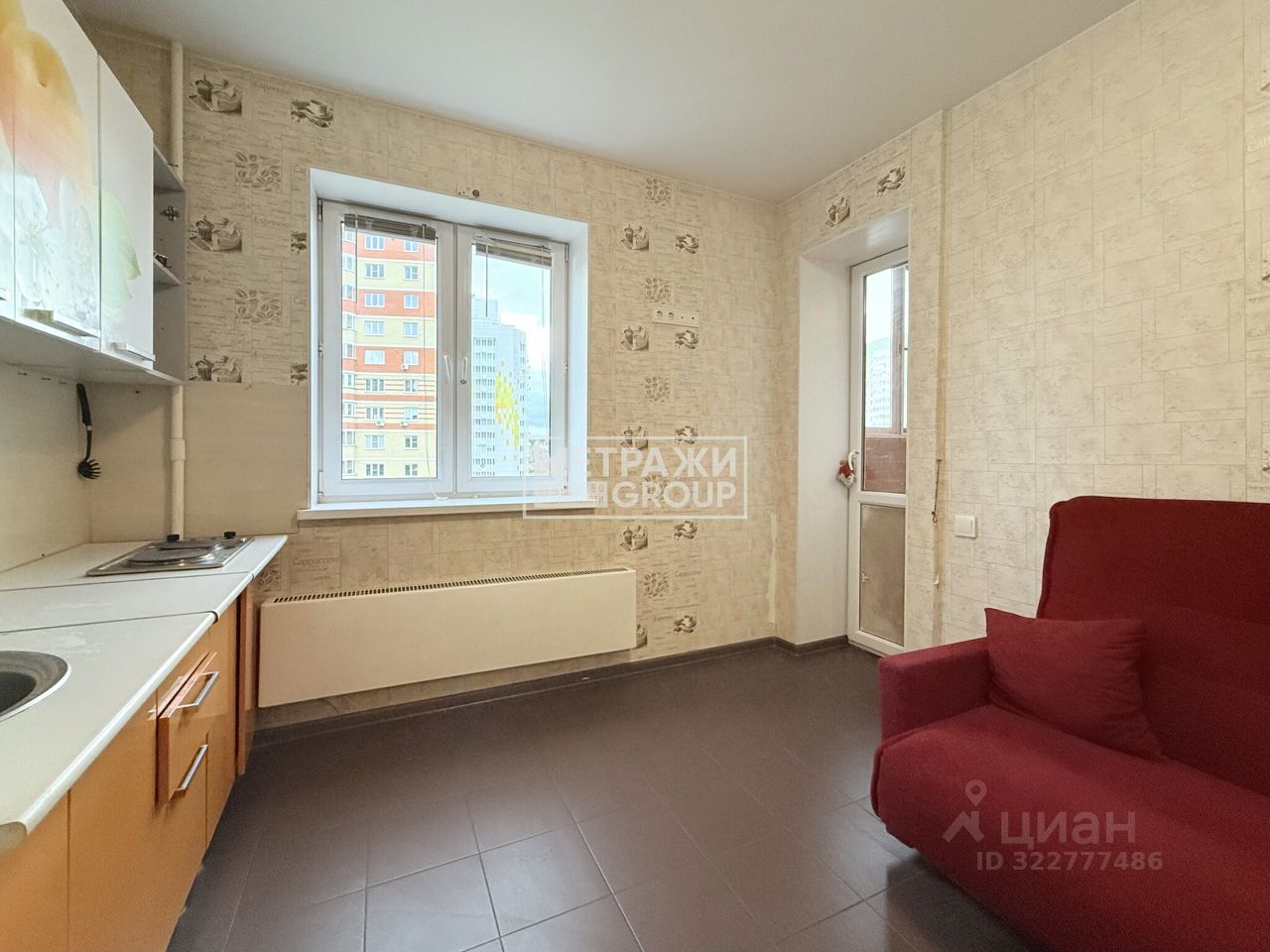 Квартира расположена на 4 этаже 16-этажного кирпично-монолитного дома, построенного в 2016 году. Общая площадь — 35,8 кв. м, из которых 16 кв. м — жилая площадь, 12 кв. м — кухня. Окна выходят во двор, а наличие лоджии добавляет удобства и возможности для отдыха.