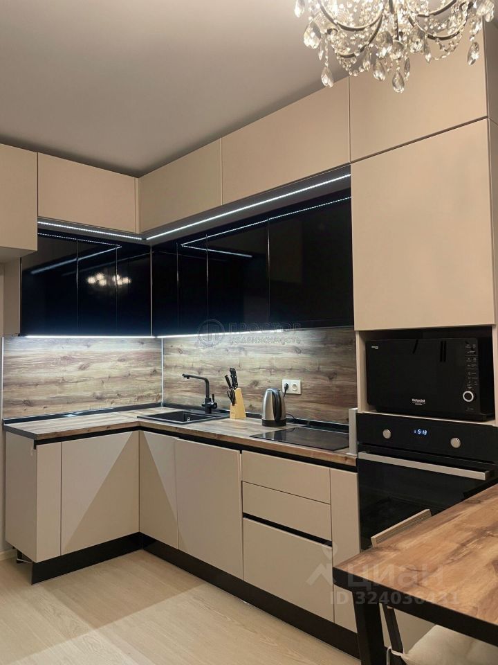 Квартира расположена на 10 этаже 16-этажного кирпично-монолитного дома, построенного в 2021 году. Общая площадь составляет 43,6 кв. м, из которых 38 кв. м — жилая площадь, а 22 кв. м — кухня-гостиная.