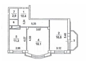 Линейная планировка, две изолированные комнаты: 18м2 с эркером и 17м2 с выходом на балкон, кухня 11,5м2, раздельный санузел.