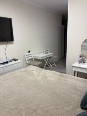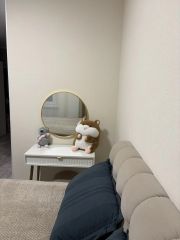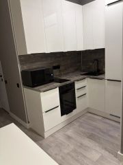 Я собственник! Продаю квартиру-студию с совершенно новым ремонтом, новой мебелью и техникой. Новая кухня со всей необходимой встраиваемый техникой, индукционная плита, духовой шкаф, встраиваемый холодильник! Так же устаноллена система фильтрации воды, что позволяет спокойно употреблять воду из под крана на кухне. Техника дорогая и качественная, кухня была сделана на заказ по собственному проекту из дорогих материалов, в принципе по фото видно. Новая кровать в мягкой оббивке, с высоким ортопедическим матрасом, всё дорогое и качественное, в ванной комнате установлена очень хорошая сантехника, стиральная машина так же только преобретена, унитаз был заменен на немецкий, не от застройщика. Так же использовалась дорогая фурнитура и текстиль, шторы блэкаут. Весь ремонт сделан из качественных материалов. Лоджия полностью с отделкой, установлены отличные стеклопакеты, сквозняков в квартиру нет. Так же имеется шкаф, для хранения одежды, комод, туалетный столик и дизайнерское зеркало, подключен интернет. Забираю только телевизор и микроволновую печь. Ремонт и обстановка в квартире была завершена всего месяц назад, в начале января, всё новое! Продаём ровно за такую сумму, сколько вложили в квартиру, цену не задираю, и ниже опускать не намерен, так что без торга. Продаём в связи с переездом в другую страну. Один взрослый собственник, без обременений.
