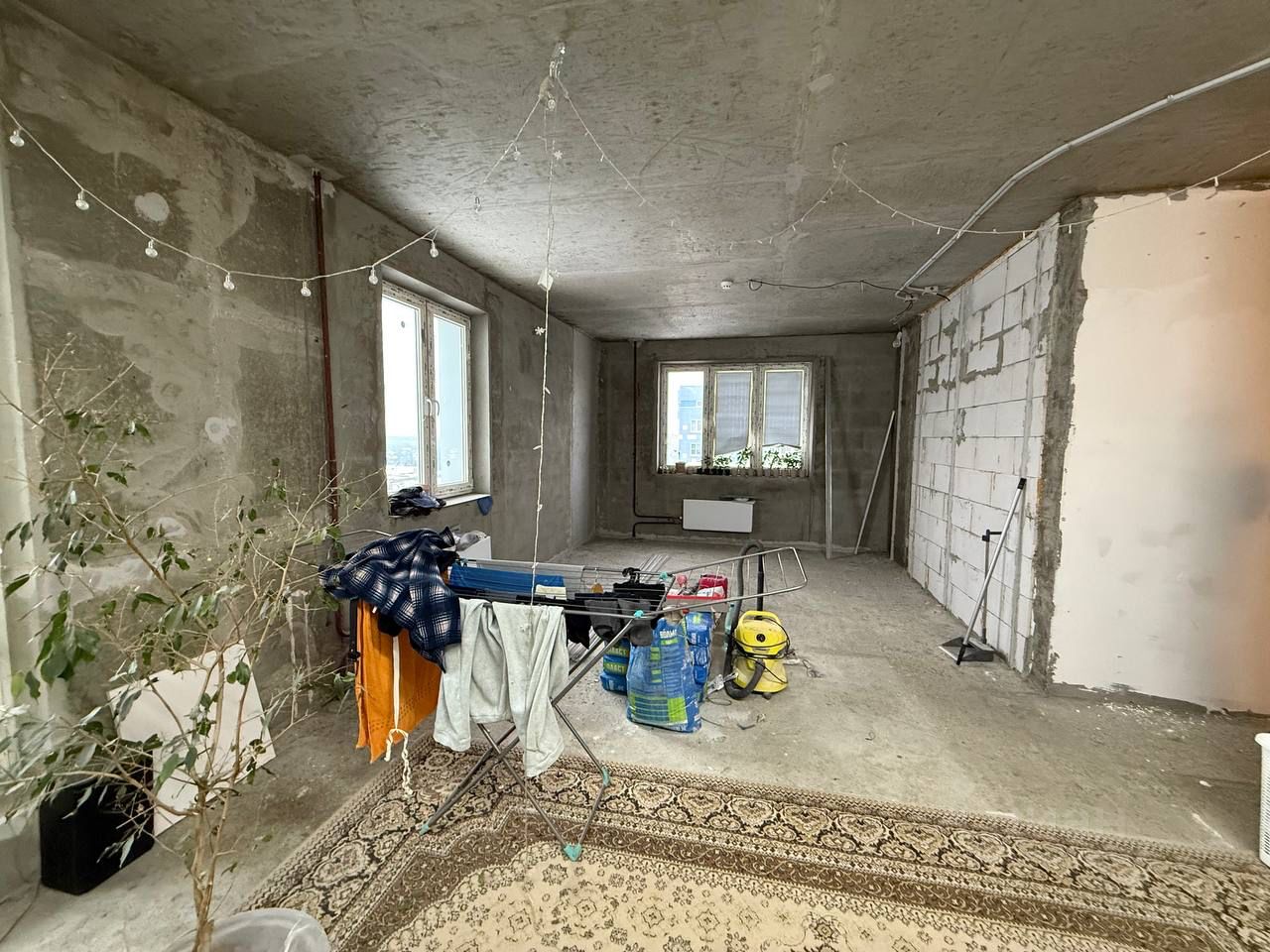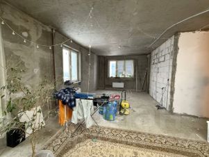 В квартире проведена вся черновая электрика (щит с хорошими автоматами, реле направление и УЗО), сантехника, сделано качественно, для себя. В спальне готовый ремонт: выкрашены стены, на полу ламинат, натяжной потолок с освещением. Ванна частично отделана плиткой, в туалете подвесной унитаз и система фильтрации для кухни. В квартире очень тепло зимой, на летний период можно монтировать кондиционер.