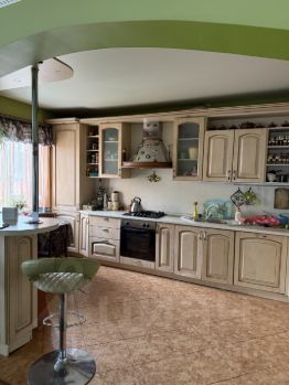 Продается просторный кирпичный дом площадью 440 кв.м с тремя этажами, один из которых цокольный и также есть выдвижная лестница на чердак, где есть возможность сделать дополнительные пространства. Есть гараж на две машины, со входом в дом. Построенный в 2012 году. Внутренний ремонт выполнен на высоком уровне — евро. В доме девять комнат, каждая из которых оформлена со вкусом и комфортом. Есть тренажерный зал. Кухня оборудована современной техникой и мебелью. На лето есть сборно каркасный 7 метровый бассейн.
